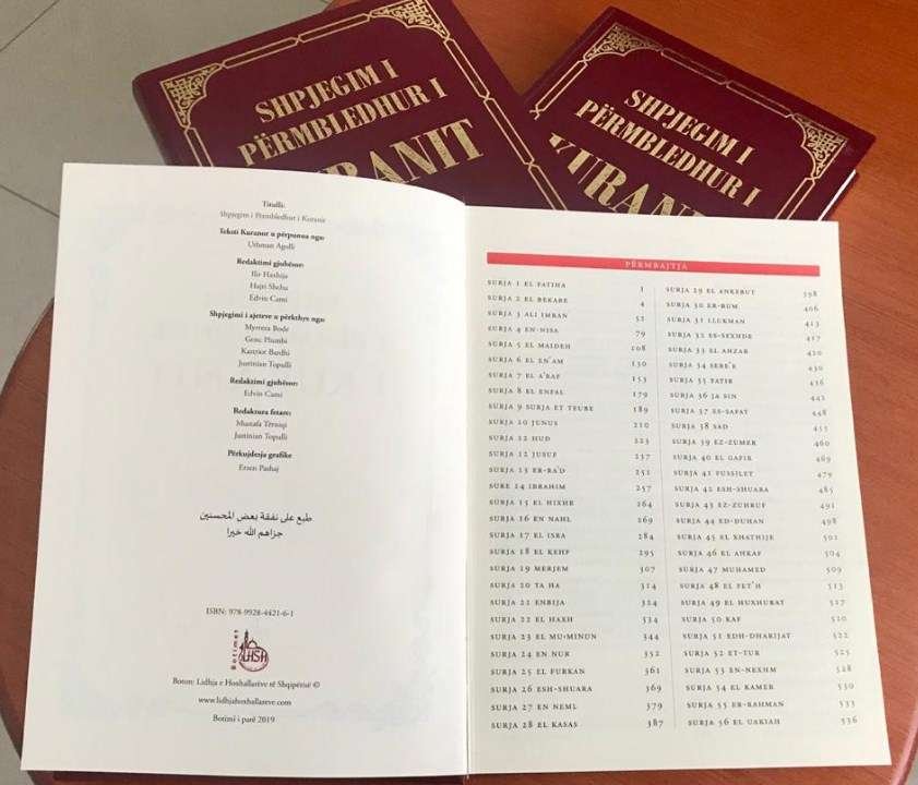 Pas një përpjekje nga një grup hoxhallarësh të LHSH-së më së fundi del nga shtypi një tefsir Kurani me të vërtetë i vlefshëm për të gjithë publikun shqiptar “Shpjegim i përmbledhur i Kuranit”. me të vërtetë që ky libër i komentit të Kuranit Famëlartë do t’iu shërbejë të gjithëve, por veçanërisht do të jetë një referencë e mirë për të gjithë hatibët e vaizët e xhamive në të gjithë vendin. Përkthimi i tekstit kuranor është rishikuar me kujdes nga hoxha Uthman Agolli, ndërsa me përkthimin e tefsirit të përmbledhur janë angazhuar një grup përkthyesish tashmë të mirënjohur për të gjithë publikun musliman për për punën e tyre cilësore në përkthim, hoxhallarët Myrteza Bode, Genc Plumbi, Kastriot Bardhi e Justinian Topulli. Me përgatitjen e botimit janë marrë hoxhë Mustafa Tërniqi e hoxhë Justinian Topulli, si dhe nën redaktimin gjuhësor të dr. Edvin Camit. Ky punim është kurorëzim i një puna disa vjeçare për të ardhur në këtë libër prej 606 faqesh, ku në mënyrë profesionale dhe me kujdesin më të madh që meriton Fjala e Allahut të Lartësuar hoxhallarët dhe publiku do të kenë mundësi të marrin bazat e Kuranit Famëlartë në shqip, të komentuar në mënyrë të përmbledhur. Një libër të cilin hoxhallarët tonë mund ta lexojnë së bashku me xhematin e tyre në xhami dhe të përfitojnë nga perlat kuranore në shqip, së bashku me komentin.